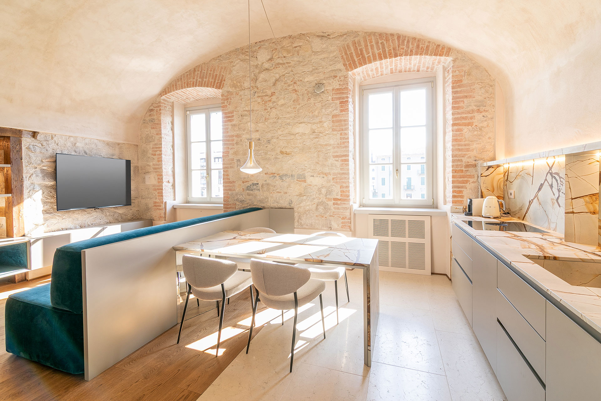 Il nostro appartamento di lusso offre un’oasi di pace e privacy. Gli ampi spazi interni, arredati con gusto e raffinatezza, si affacciano su un incantevole panorama di lago.